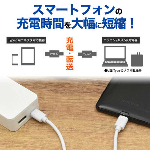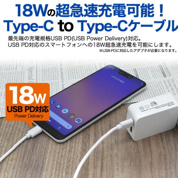 スマホ Type-C toType-Cケーブル 100cm 充電ケーブル スマートフォン スマホアクセサリー ■18Wの超急速充電可能!Type-C toType-Cケーブル 100cm! 最先端の充電規格USB PD(USB Power Delivery)対応!USB PD対応のスマートフォン(Type-Cポート搭載)への、18W超急速充電を可能にします。